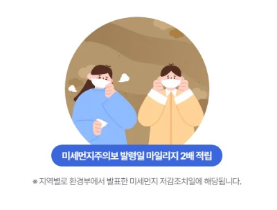 5. 미세먼지 저감 조치 발령날에는 마일리지 2배 적립 ( 하단 그림참조 )