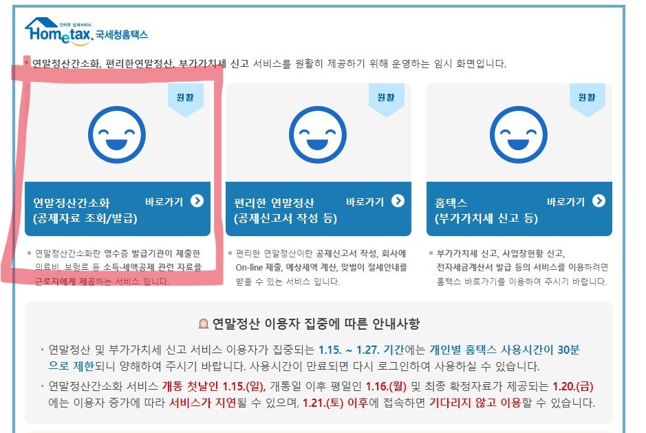 들어가시면 첫 화면 첫 번째 연말정산 간소화 눌러주세요